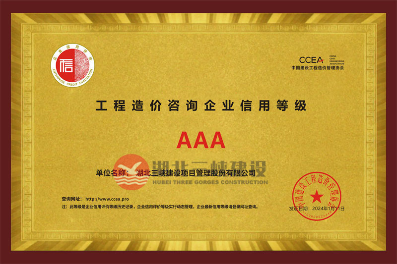 工程造价咨询企业信用等级AAA