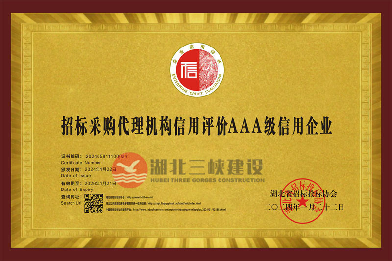招标采购代理机构信用评价AAA级信用企业