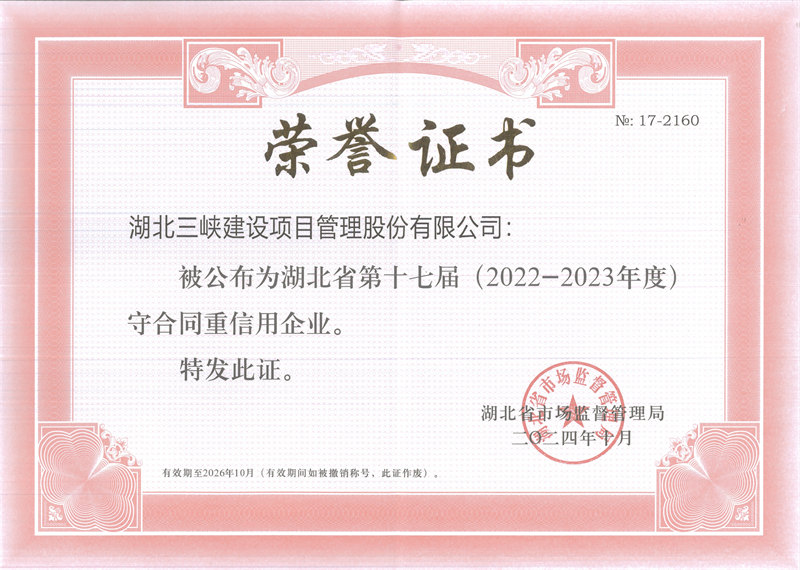近四十年以来,三峡建设人恪守“科学、公正、诚信、开拓”的经营宗旨,秉持“通过过程控制实现投资价值最优化”的增值理念,践行“让业主满意、为社会尽责、使自己安心”服务原则,着力“打造具有增值服务价值和社会公信力的工程建设管理咨询企业“,努力为客户提供更精准的技术管理服务,努力为员工创造更美好的人生平台,努力为社会回馈更有益的正能量,广泛得到项目业主和建设行政管理部门的高度信任和支持。公司连续连续十六年获湖北省先进监理企业、连续十七年获湖北省守合同重信用企业,被中国建设工程造价管理协会信用评价为“AAA”等级,被中共宜昌市西陵区委授予优秀基层党组织荣誉称号。
